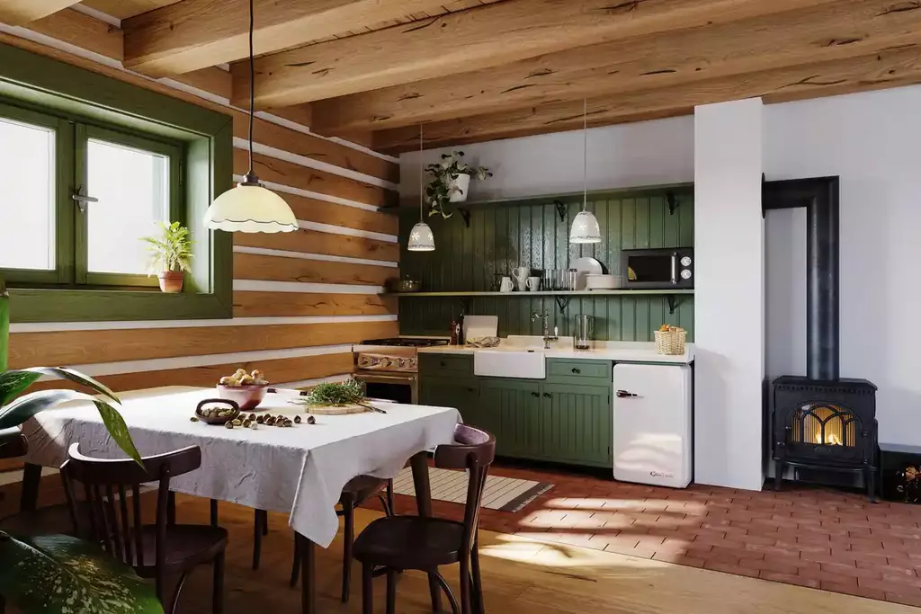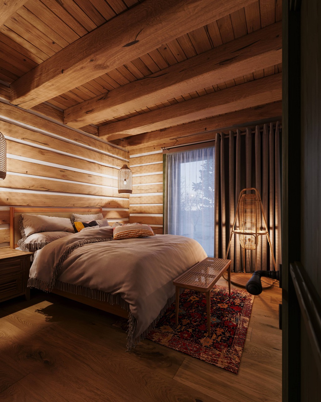 Prostor ve kterém budete žít a nebo odpočívat je díky jedinečnému designerskému počinu stylizován do prvotřídního roubeného designu. Dřevo je blahodárné a potkáte ho na stěnách, podlaze i příslušenství Vašeho nádherného apartmánu.